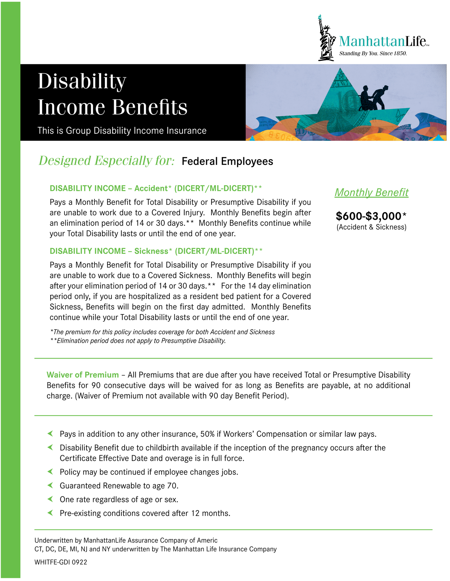 We offer simplified issue disability policies for Federal employees: